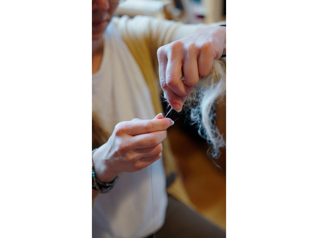 Dále s tkadlenami Michaelou Křivonožkovou a Martinou Čaputovou budete jednoduchými tradičními technikami spřádat vlákna na nitě a z nich pak tkát jednoduché náramky nebo pásky.