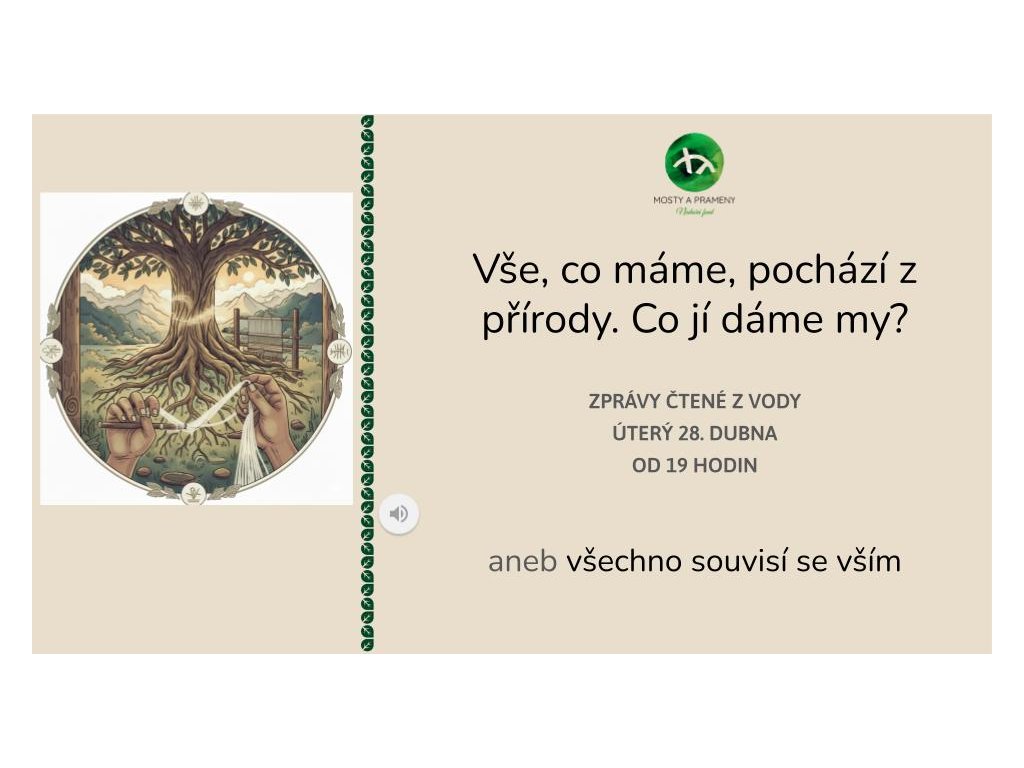 Online pořad Zprávy čtené z vody je prostor pro sdílení toho, jak lze přemosťovat přírodní vědění domorodých kmenů anebo tradičních kultur do naší společnosti.